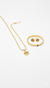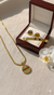 Introducing our luxurious Gucci inspired gold tone jewelry set, featuring a stylish bracelet, matching earrings, and a pendant necklace. This elegant set adds a touch of sophistication to any outfit. The set includes