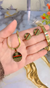 - Pair of gold tone earrings with Gucci logo and green & red stripe