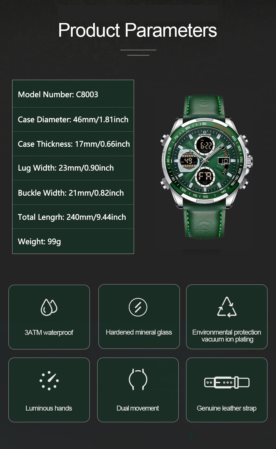 Colors: Silver-Green, Gold-Green, Black, Silver-Blue, Black-Brown